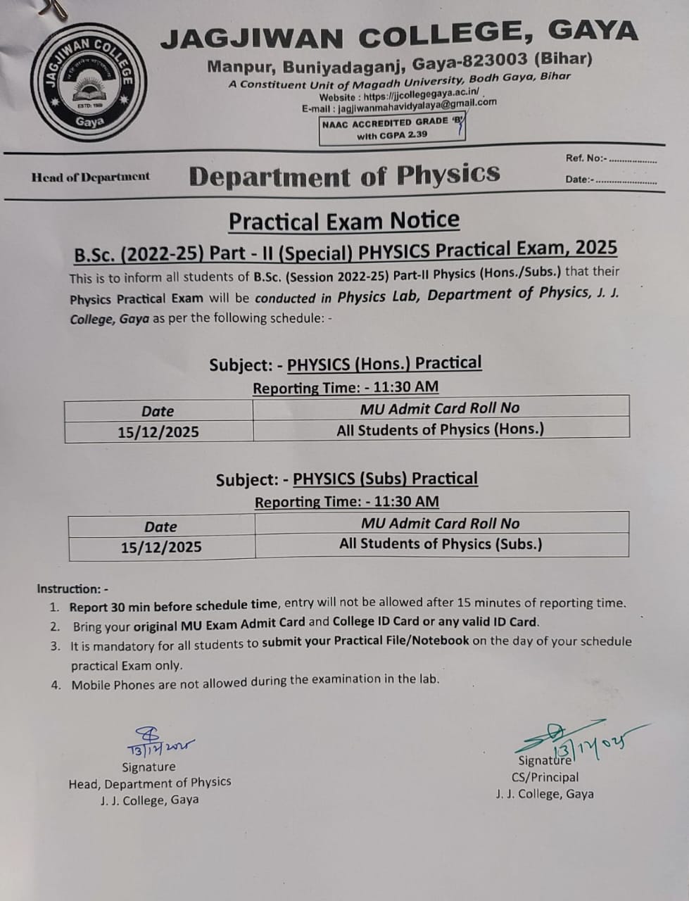 News : PRACTICAL EXAM 2022-25 PART - II PHYSICS