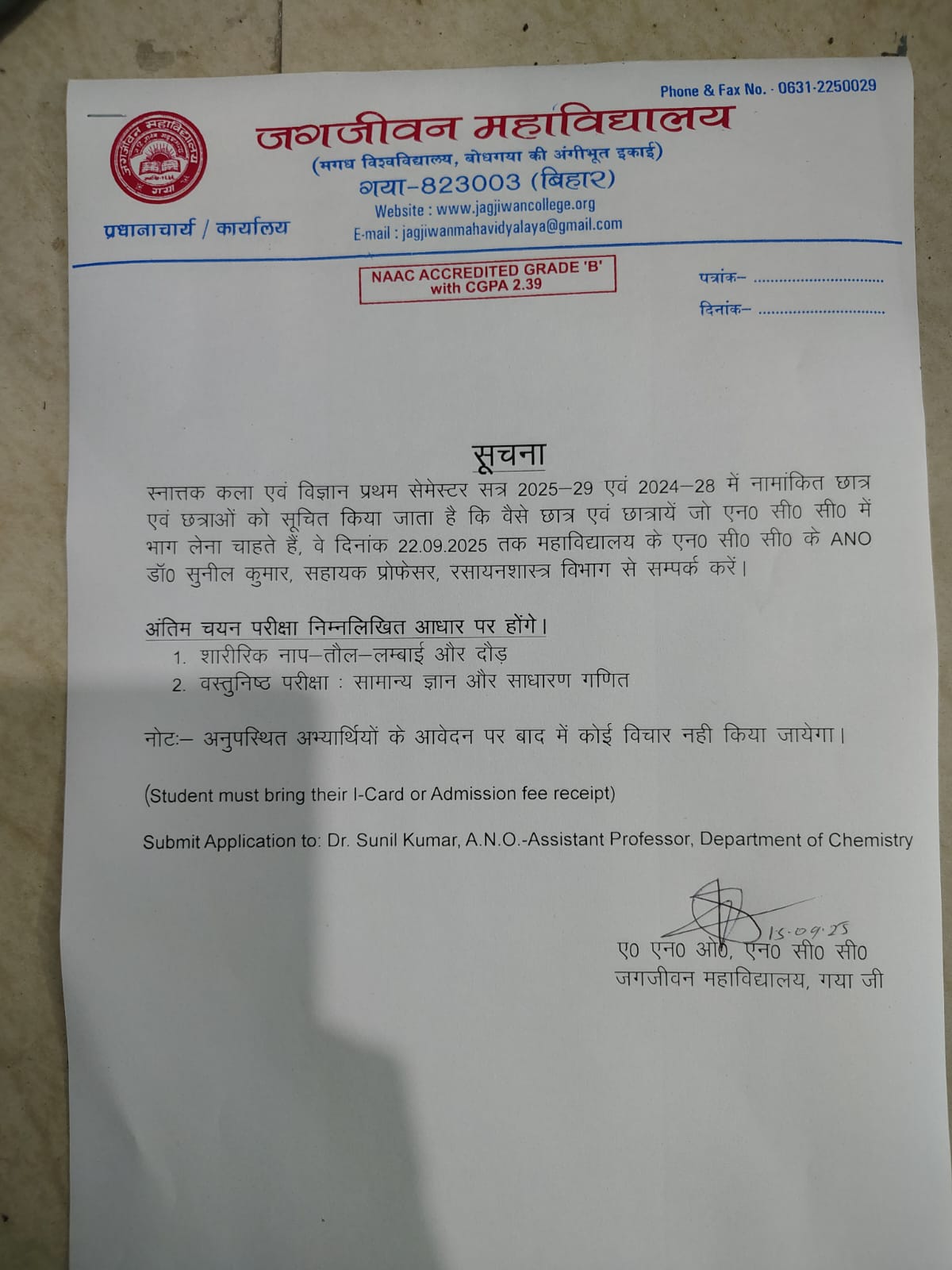 News : NOTICE REGARDING 1ST SEMESTER STUDENTS SESSION (2024-28/2025-29) WHO WANT TO PARTICIPATE IN NCC