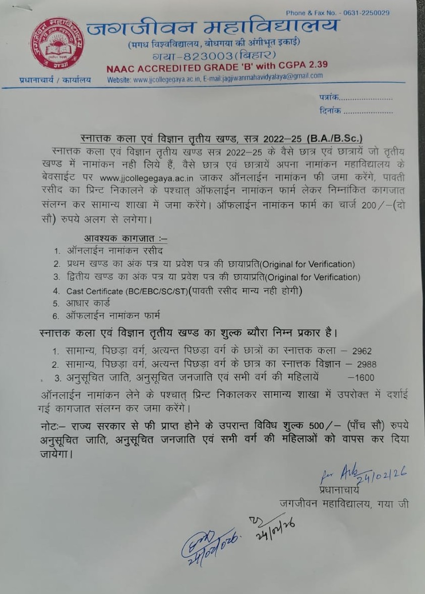 >> JAGJIWAN COLLEGE, GAYA Notice Board